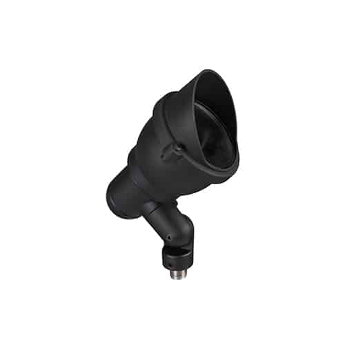 For accenting architectural and landscape features, this line voltage up & accent fixture with medium shroud utilizes R20 or PAR20 Incandescent and HID series of lamps and is rated for use with lamps up to 50 watts. The injection-molded, fiber-reinforced Ryton™ R4 composite housing is designed to withstand the most rugged of applications. The shroud is fitted to the housing with a C-curved cross-section gasket to ensure a superior weather-tight seal. A clear, tempered, shock and heat resistant soda-lime glass lens safeguards the lamp and optics. The intelligently engineered fully adjustable knuckle is made from injection-molded, fiber-reinforced composite which effectively isolates the fixture from the harmful corrosive soil. There are 18 super durable polyester powder-coated finishes to choose from. With several different optical accessories available, the 1091-M stands ready for a multitude of lighting tasks. Lamp not included with fixture, mounting hardware not included. HID lamps require a ballast.