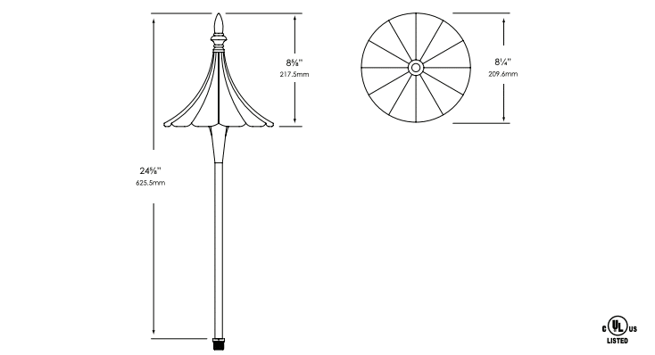 Ideal for lighting flower beds, low planter areas, walkways and driveways, this line voltage path light fixture utilizes Candelabra Incandescent series of lamps and is rated for use with lamps up to 60 watts. The die-cast, copper-free aluminum housing is designed to withstand the most rugged of applications. A clear, high impact, polycarbonate lens safeguards the lamp and optics. The stem is a ¼” schedule-40 aluminum pipe with a ½” NPT custom bushing designed with a stress-dispersing collar to ensure strength and stability for mounting. The 1215 has 18 super durable polyester powder-coated finishes to choose from. Lamp not included with fixture, mounting hardware not included.