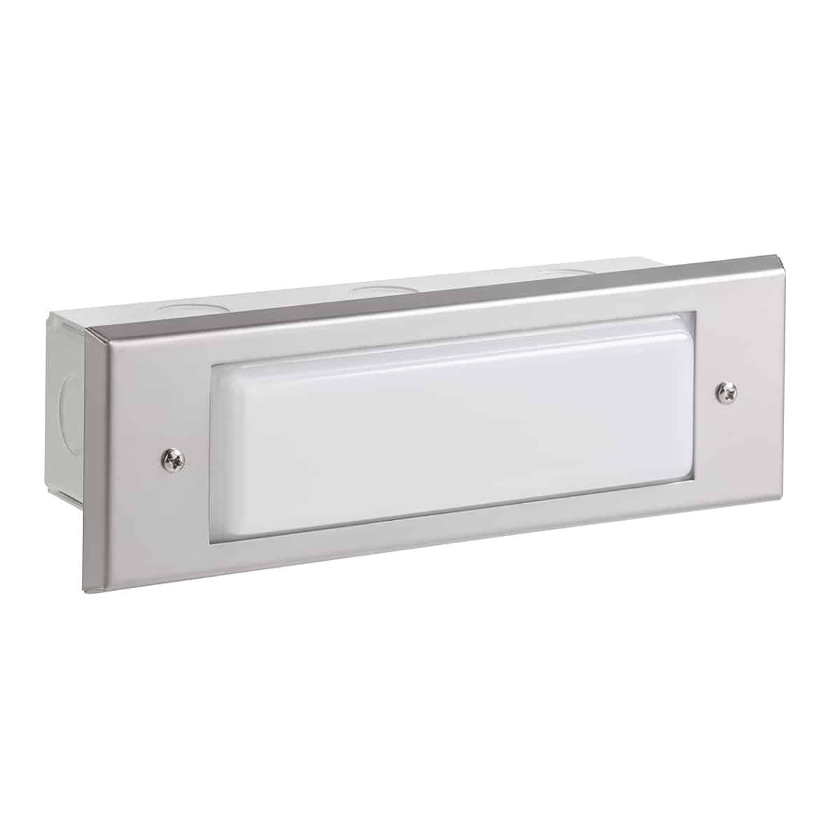 Recessed within the elements of steps or walls for low-level area lighting, this low voltage lens face brick light fixture is constructed of a stamped and formed, copper-free, aluminum housing with ½” knockouts on the back and sides. A solid brass cover plate is fitted with UV-resistant weather stripping to ensure a superior weather-tight seal. A translucent, high-impact, polycarbonate lens safeguards the lamp and optics.