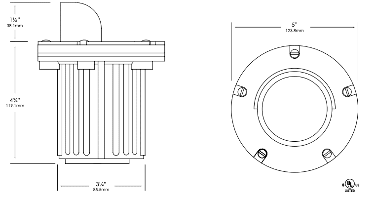 This ruggedly designed low voltage in-ground fixture with a solid brass trim ring and glare shield is constructed of injection-molded, fiber-reinforced composite for strength and high UV stability and is warranted for ten years against corrosion. The convex lens is clear, high temperature tempered soda-lime glass for high-impact resistance, furnished with silicone molded gasket for a watertight seal. Also, an adjustable lamp bracket (not available with integrated LED) provides ±25° of tilt for precise beam control and locks into place preventing any disruption of lamp position during maintenance.