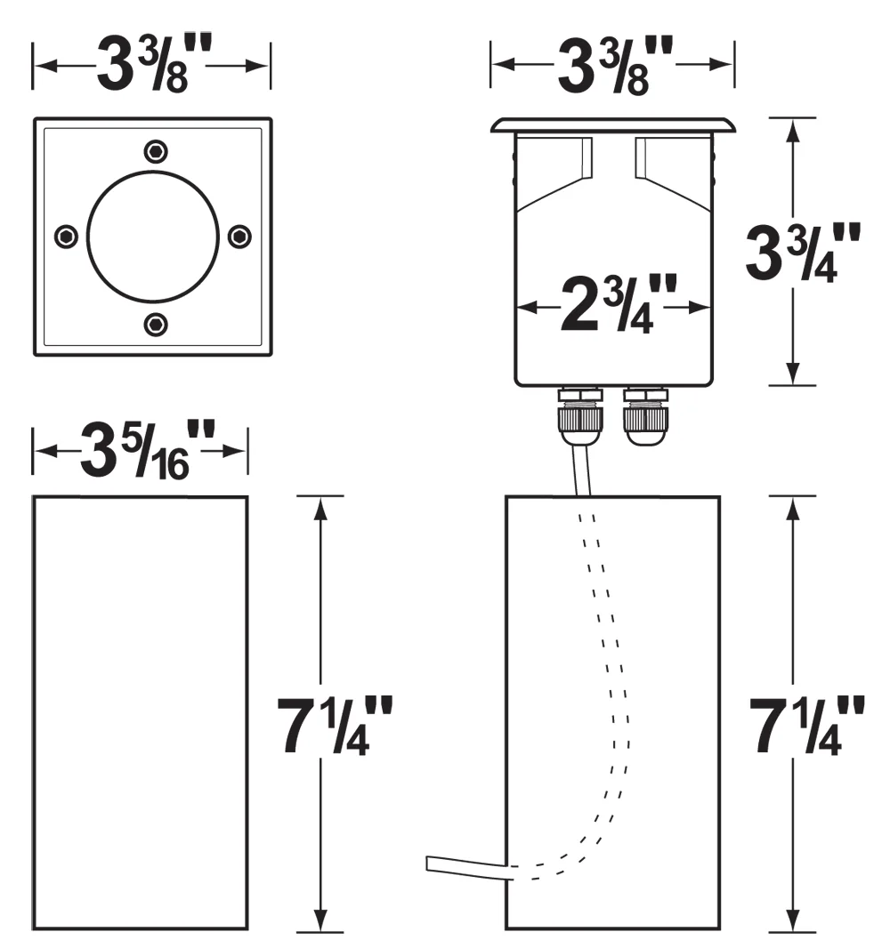 Mounting : PVC Sleeve for In-ground direct burial or concrete encasement. Including in-out compartments for multiple connections.