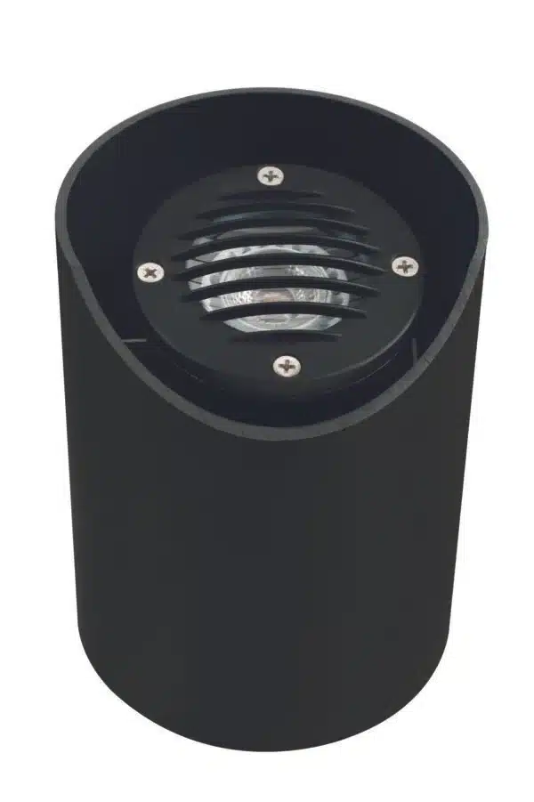 Housing : Suspended inside a reversible flat or angled cut PVC sleeve, provides in-ground support. Fixture is adjustable inside the PVC sleeve for light aiming.